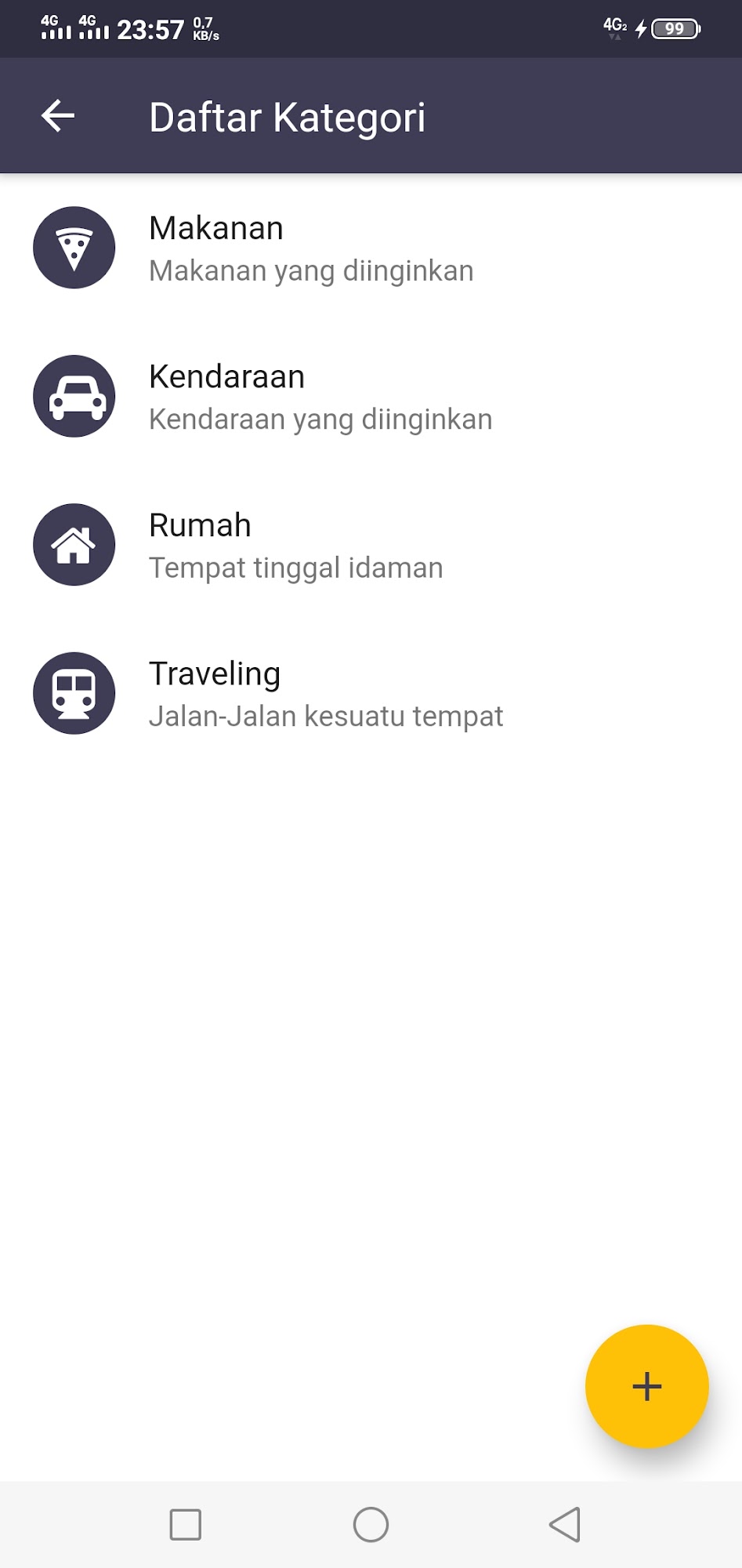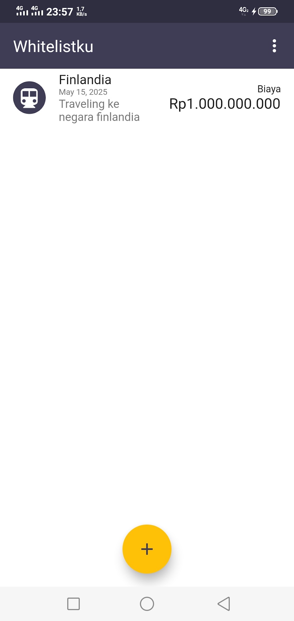 Whitelistku - Flutter Mobile Application Whitelistku adalah aplikasi pencatatan sederhana yang memungkinkan pengguna mencatat keinginannya berdasarkan kategori. Aplikasi ini hasil dari latihan saya saat mempelajari sistem database SQLite pada Flutter.